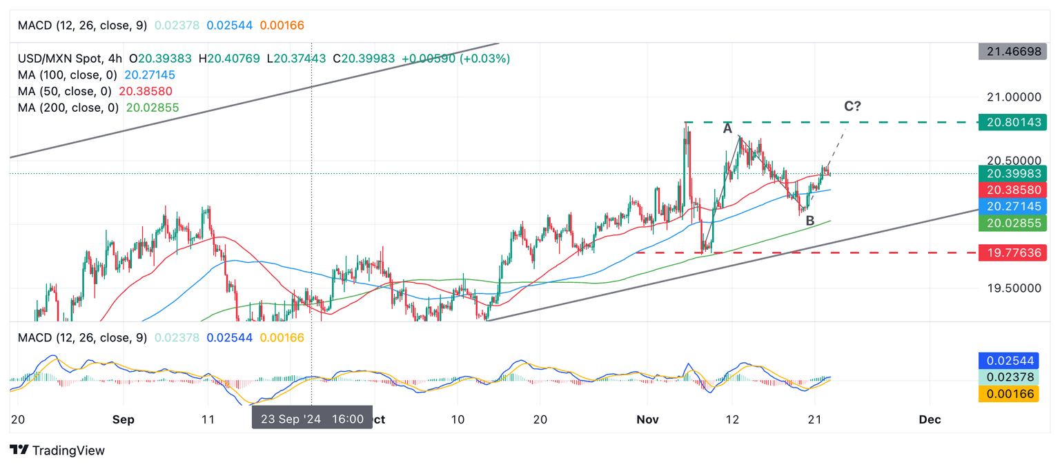 Análisis Técnico: USD/MXN extiende la onda "C" al alza