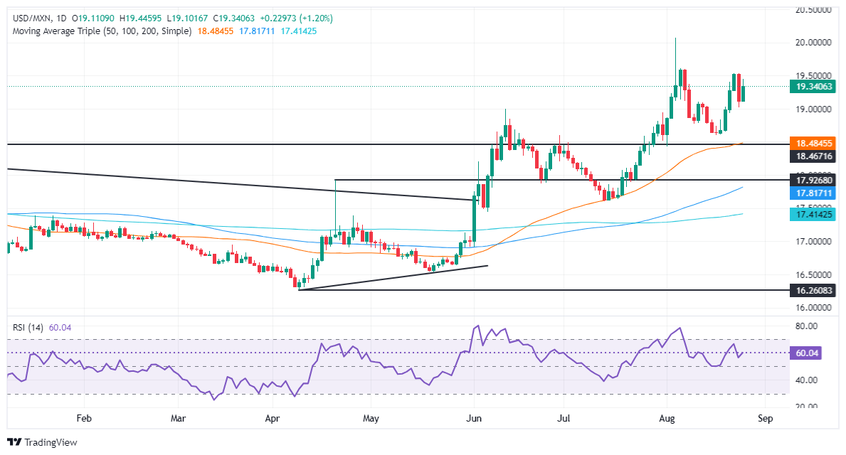 Perspectiva técnica: El Peso mexicano se debilita mientras el USD/MXN salta por encima de 19.30