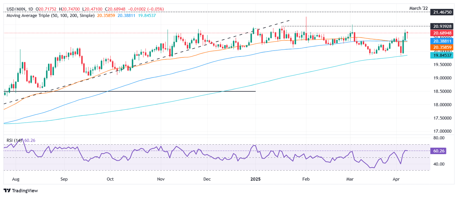 Perspectiva técnica del USD/MXN: El Peso mexicano se mantiene estable mientras el USD/MXN supera los 20.70