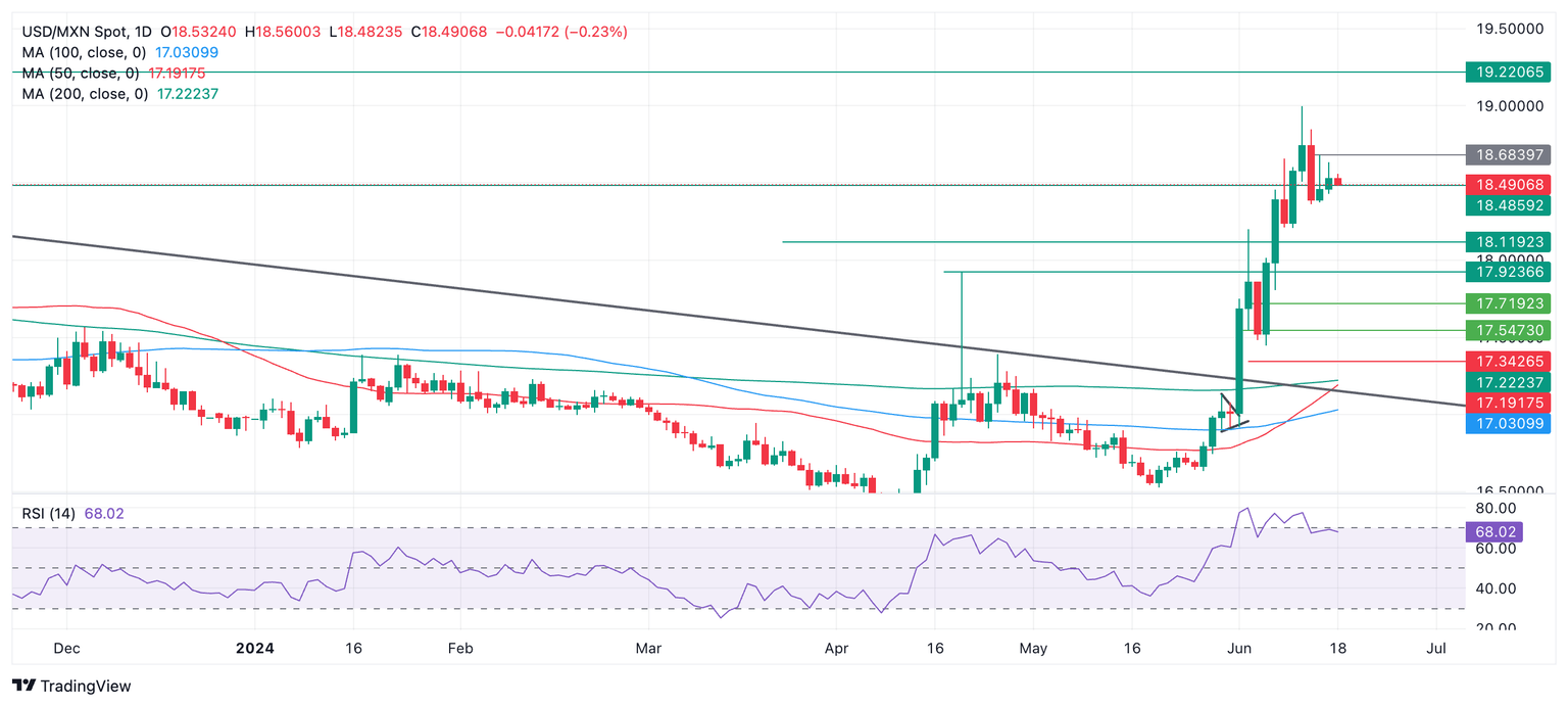 - El USD/MXN continúa retrocediendo en medio de una tendencia alcista a corto y mediano plazo.