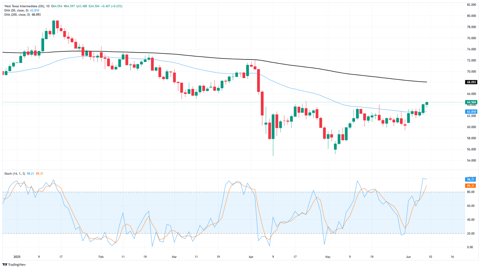 Los precios del petróleo crudo West Texas Intermediate (WTI) de EE.UU. están probando nuevos máximos de siete semanas el lunes, superando los 64.00$ por barril. Los operadores de energía están apostando por un doble aumento en la demanda debido a la temporada de viajes de verano y un aumento eternamente elusivo en la demanda de barriles de China para compensar un posible exceso a medida que la Organización de Países Exportadores de Petróleo (OPEP) aumenta las cuotas de producción de petróleo crudo.