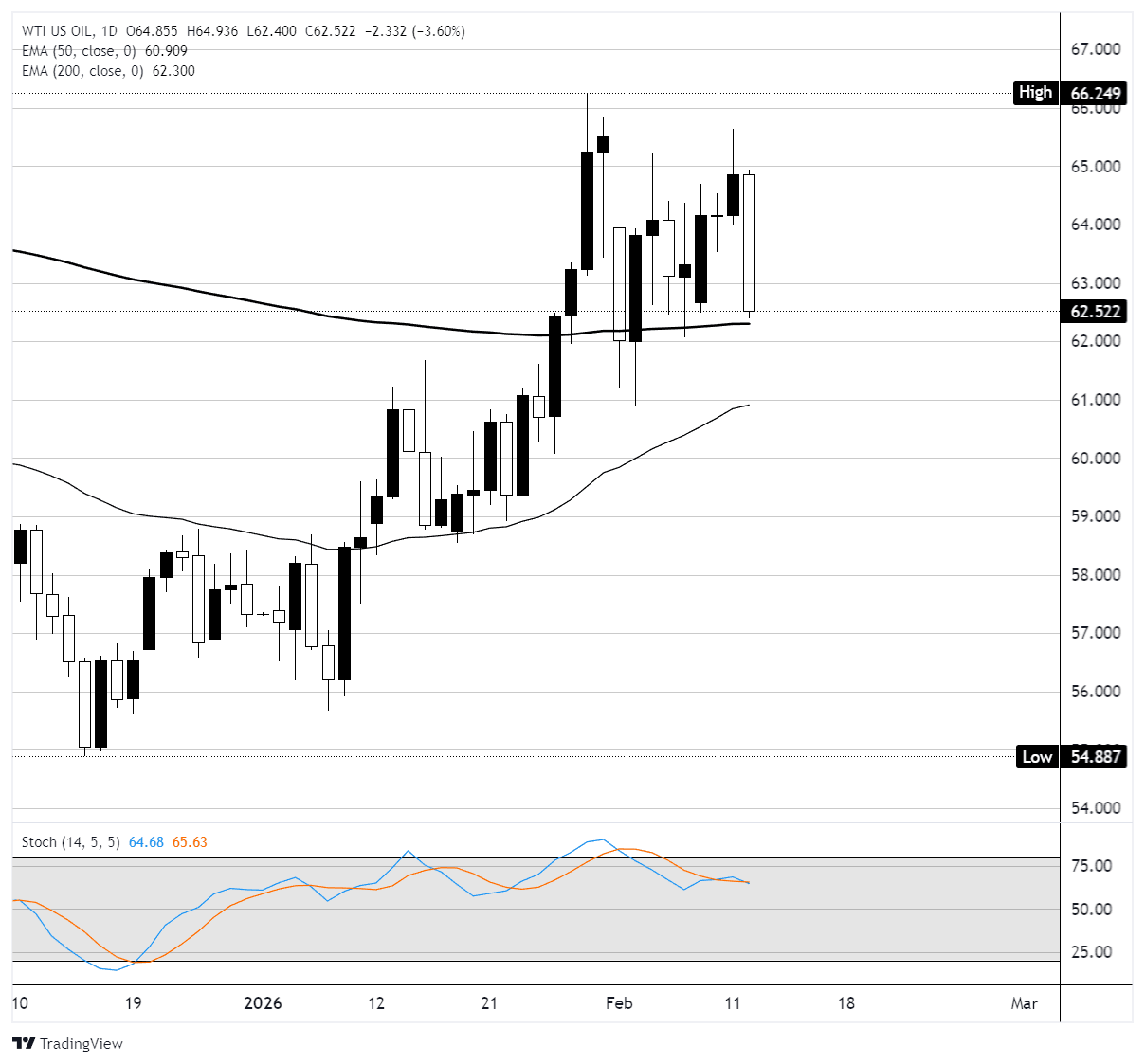 Según declaraciones del presidente israelí Benjamin Netanyahu, el presidente estadounidense Donald Trump y Ali Khamenei de Irán se están acercando a lo que podría ser un acuerdo que vería el fin de las tensiones en Oriente Medio, que aún siguen en aumento, entre los dos líderes mundiales tempestuosos. Los operadores de petróleo crudo han reducido drásticamente sus apuestas en WTI, que ahora ha caído más de un 3.5% desde la apertura del día en el momento de escribir. Los precios del barril de WTI se acercan rápidamente al nivel importante de 62.00$, que se encuentra convenientemente cerca de la media móvil exponencial (EMA) de 200 días.