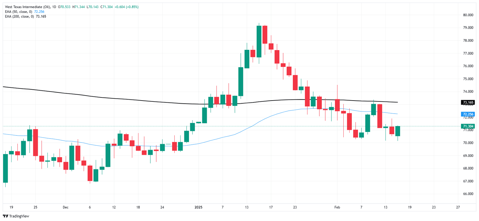 Los precios del petróleo crudo encontraron una oferta el lunes, pero los precios por barril continúan en el lado bajo de la media móvil exponencial (EMA) de 50 días cerca de 72.25$. Una caída a corto plazo en la acción del precio de las energías parece haber disminuido después de derribar al WTI de su último máximo oscilante por encima de 79.00$, arrastrando las ofertas por debajo de la EMA de 200 días cerca de 73.90$ en el proceso. Un suelo técnico se ha fijado justo por encima del nivel de precio mayor de 70.00$, manteniendo los precios atrapados en un rango técnico estrecho.