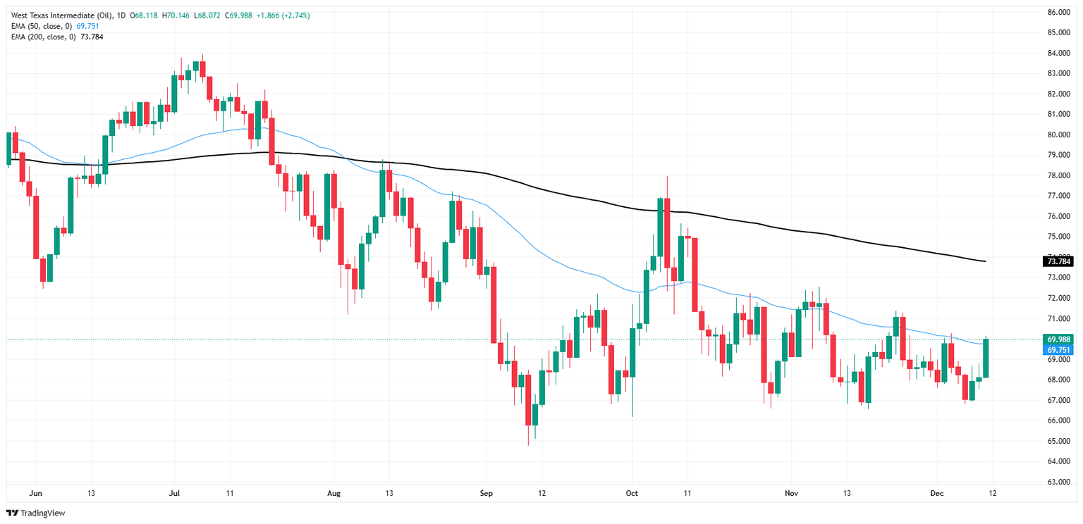 Los precios del petróleo crudo West Texas Intermediate (WTI) se recuperaron el miércoles, subiendo alrededor del 2,75% y alcanzando los 70$ por barril después de que la Administración de Información de Energía (EIA) informara una reducción más pronunciada en las reservas de petróleo crudo de EE.UU. de lo que los operadores de energía anticipaban. La Organización de Países Exportadores de Petróleo (OPEP) ha reducido sus previsiones de crecimiento de la demanda global de petróleo crudo, sin embargo, los comerciantes de barriles aún confían en el creciente demanda de energía de China para absorber el excedente.
