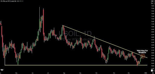 No solo el gráfico es alcista y está probando un nivel importante, sino que fundamentalmente es probable que vea una afluencia de dinero del comercio de metales. Casi todas las demás materias primas importantes han tenido grandes aumentos en 2025: el oro, la plata, el platino y el paladio han subido significativamente, e incluso el gas natural se disparó un 100% antes de retroceder recientemente. Los inversores institucionales están acumulando y probablemente desencadenarán la próxima subida. Una vez que el petróleo se dispare, los minoristas y las instituciones de menor nivel probablemente se apresuren a entrar en el comercio, impulsándolo bruscamente hacia arriba.