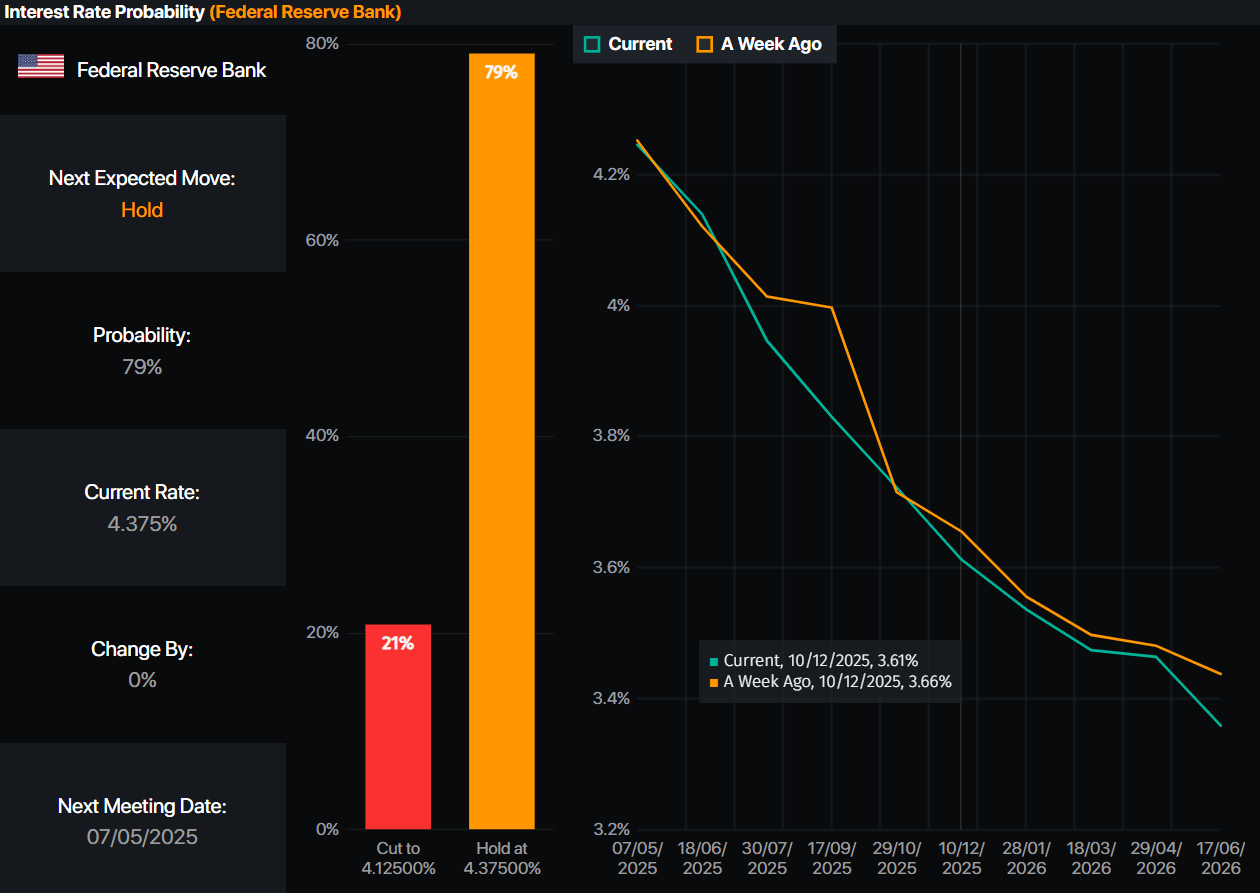 Mientras tanto, los mercados monetarios han valorado 73.5 puntos básicos de alivio de la Fed en 2025, aumentando diez puntos básicos desde el día anterior, según las probabilidades de tasas de interés de Prime Market Terminal.