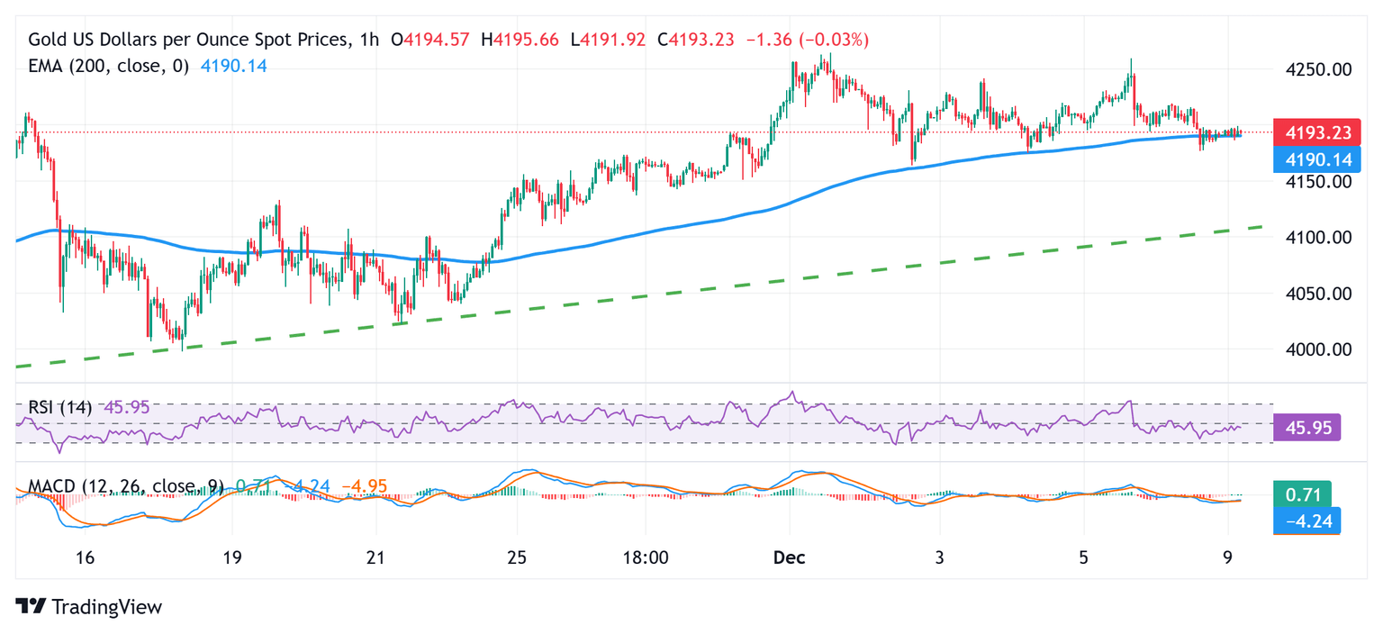 Mientras tanto, las expectativas firmes de que el banco central de EE.UU. reducirá los costos de endeudamiento esta semana y las apuestas por más recortes de tasas en 2026 mantienen un freno a la recuperación intentada del USD desde su nivel más bajo desde finales de octubre, tocado la semana pasada. Esto, junto con los persistentes riesgos geopolíticos derivados de la prolongada guerra entre Rusia y Ucrania y el cauteloso estado de ánimo del mercado, podría seguir actuando como un viento de cola para el Oro de refugio seguro. Por lo tanto, será prudente esperar un fuerte seguimiento de ventas antes de confirmar que el par XAU/USD ha alcanzado su punto máximo a corto plazo y posicionarse para cualquier movimiento de depreciación significativo.