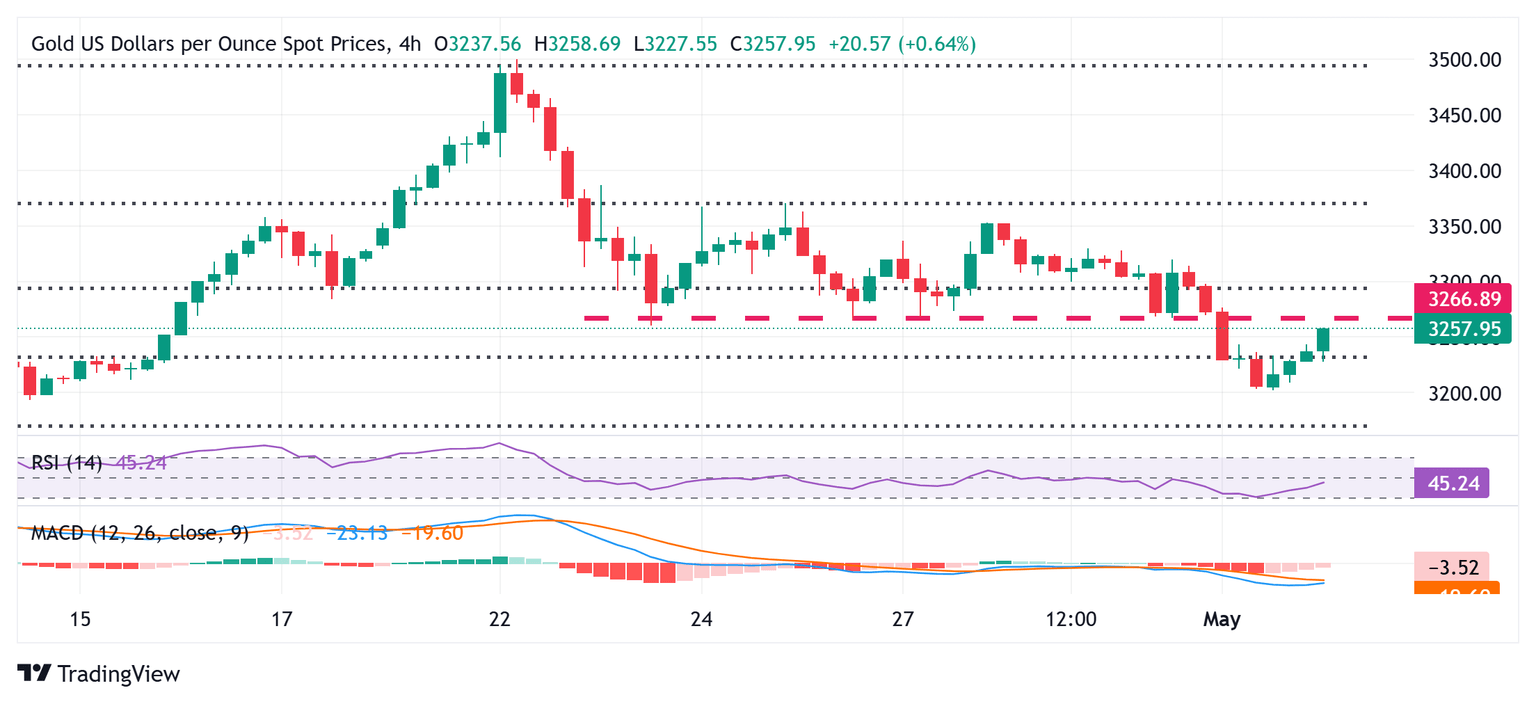 El precio del Oro necesita superar la barrera de $3,260-3,265 para apoyar las perspectivas de un movimiento intradía adicional al alza