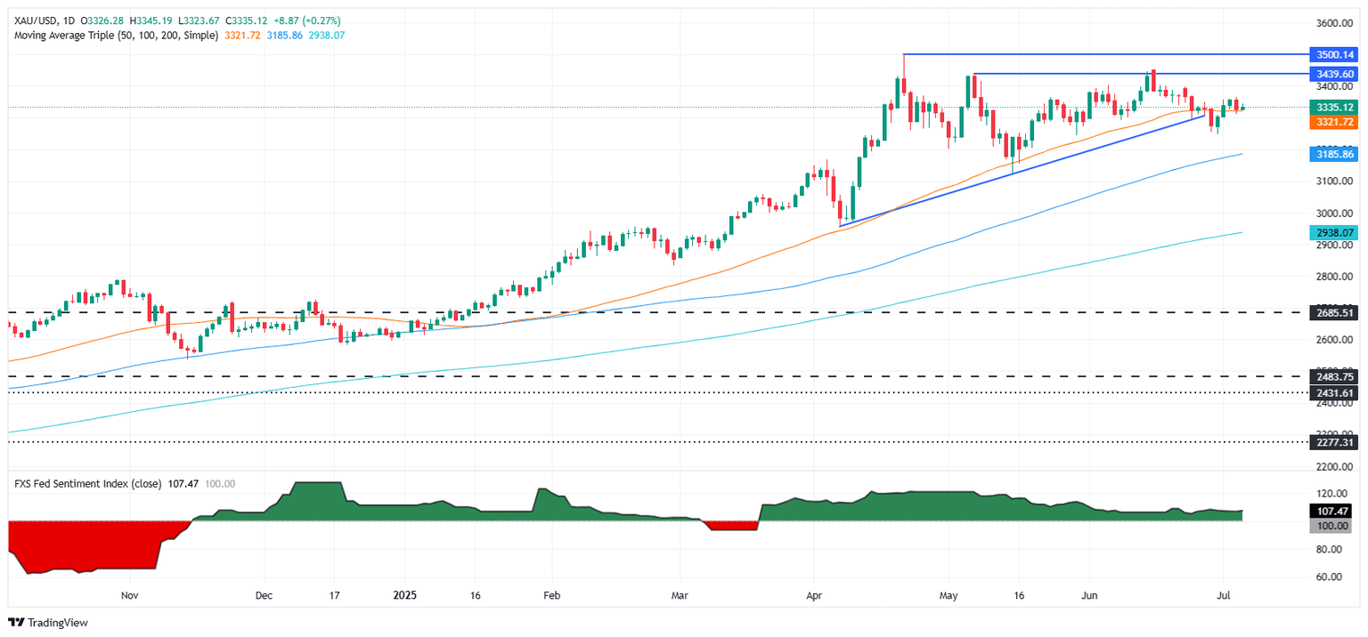 El precio del Oro reanuda su tendencia alcista el viernes, listo para registrar ganancias de más del 1.50% para la semana, ya que el Dólar estadounidense está en retroceso en medio de condiciones de liquidez escasa tras el cierre de los mercados estadounidenses en celebración del Día de la Independencia. Una ligera escalada de la guerra comercial impulsó los precios del metal precioso. El XAU/USD cotiza a 3.333$, con un aumento del 0.26%.