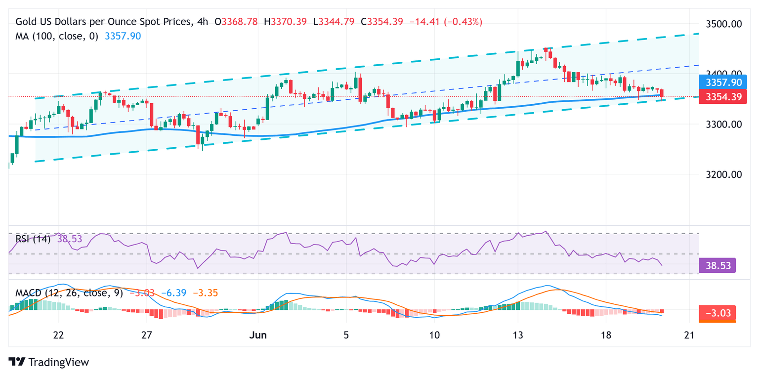 El precio del Oro (XAU/USD) se observa consolidando sus pérdidas intradía a más de un mínimo de una semana y cotiza justo por debajo del nivel de 3.350$ durante la primera mitad de la sesión europea. La Reserva Federal de EE.UU. (Fed) a principios de esta semana recortó las proyecciones de recortes de tasas para 2026 y 2027, lo que, a su vez, se considera un viento de cola para el Dólar estadounidense (USD) y socava la demanda del metal amarillo sin rendimiento.