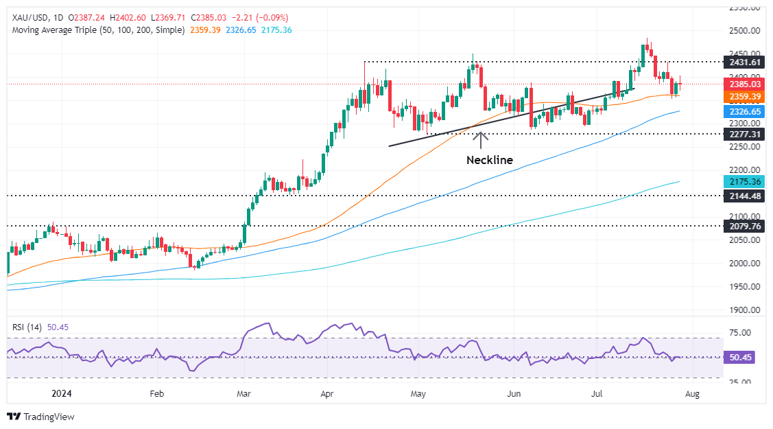 Si los compradores del XAU/USD recuperan los 2.400$, eso podría empujar los precios por encima del área psicológica de 2.450$. Una ruptura de esta última expondrá el máximo histórico alrededor de 2.483$, seguido por la marca de 2.500$.