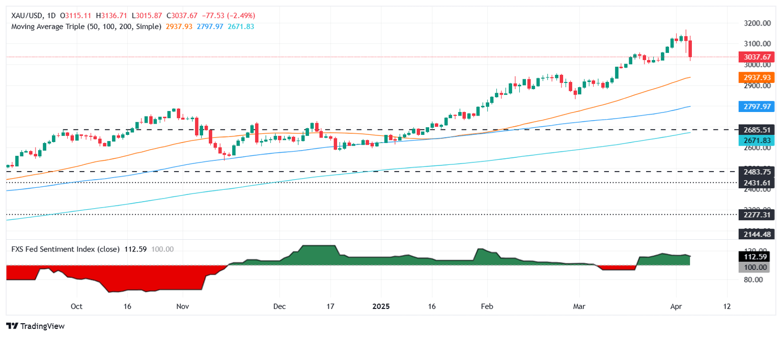 Perspectiva técnica del XAU/USD: El precio del Oro cae por debajo de 3.050$