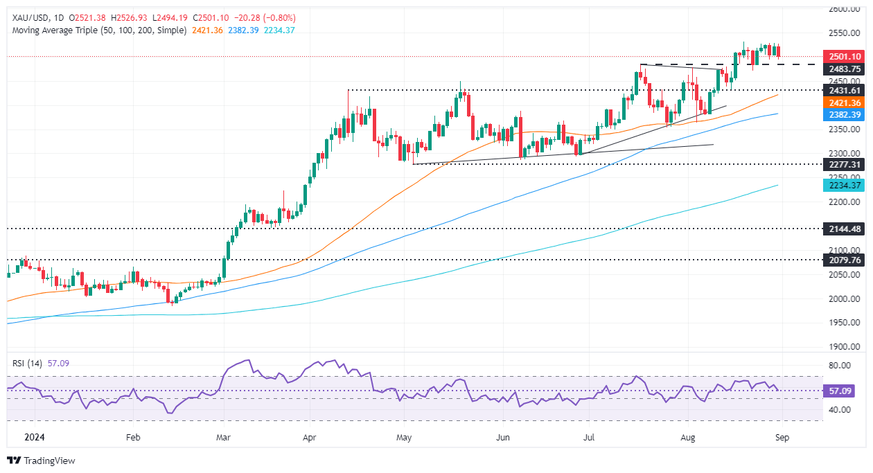 Si el XAU/USD logra un cierre diario por debajo de 2.500$, el próximo soporte sería el mínimo del 22 de agosto en 2.470$. Una vez superado, la siguiente parada sería la confluencia del mínimo del 15 de agosto y la media móvil simple (SMA) de 50 días en 2.431$.