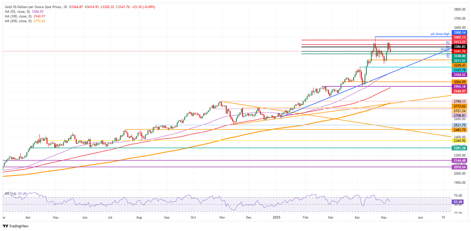 El Oro (XAU/USD) cae a 3.340$ en el momento de escribir el jueves, una corrección menor al 1% en la salida de refugios seguros, con el presidente de los Estados Unidos (EE.UU.) Donald Trump esperado para anunciar un acuerdo comercial con el Reino Unido (Reino Unido) en una conferencia de prensa a las 14:00 GMT en Washington, según personas familiarizadas con el asunto. Mientras tanto, la administración del Reino Unido ha confirmado a Bloomberg y al Financial Times que se anunciará un acuerdo. Los detalles sobre ese acuerdo comercial siguen sin confirmarse.