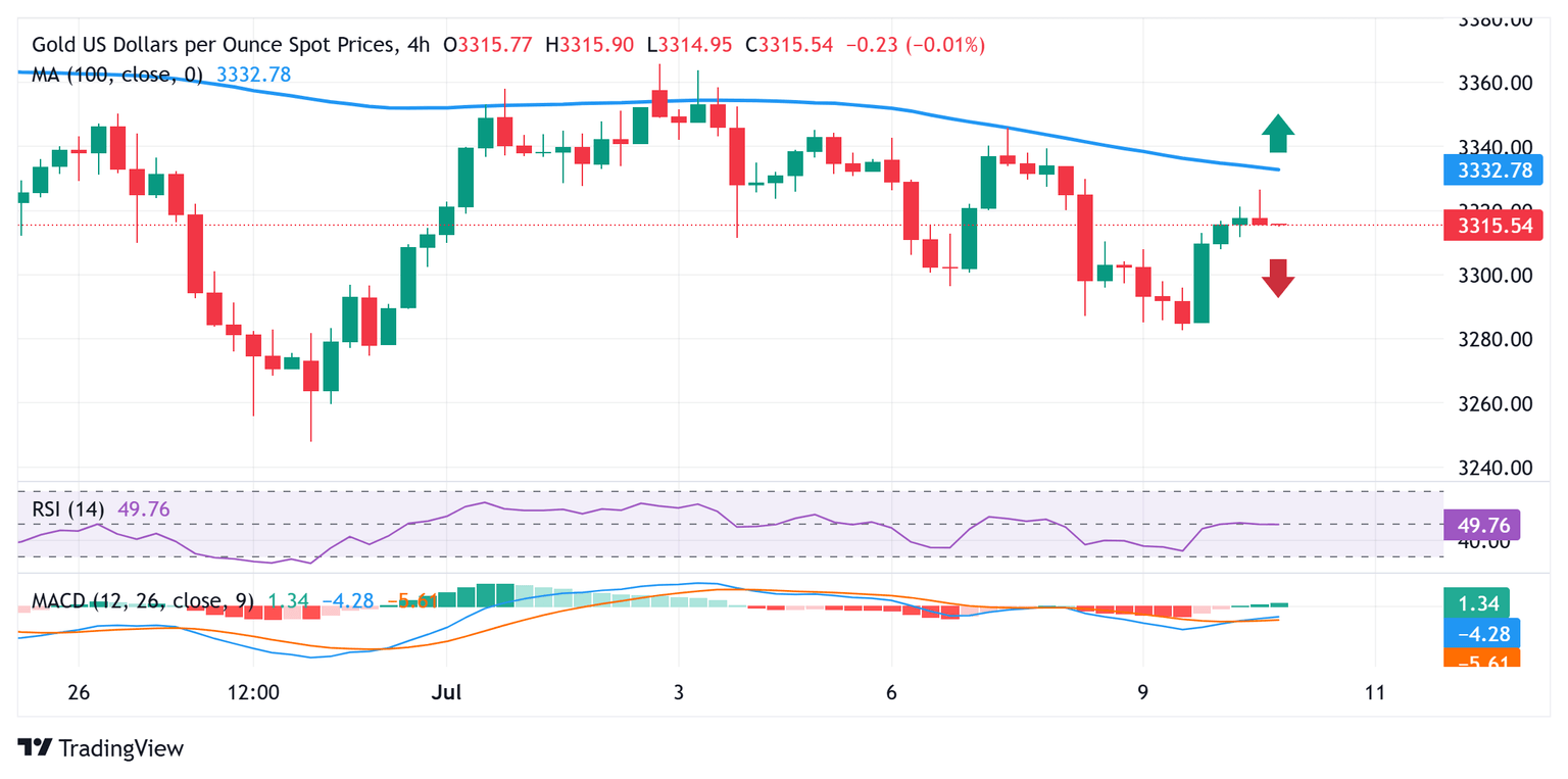 El precio del Oro parece vulnerable mientras esté por debajo del obstáculo clave de la SMA de 100 en H4, alrededor de la región de 3.335 $