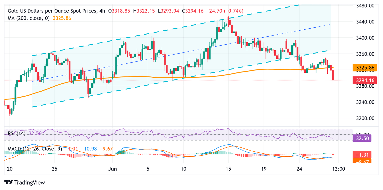 Desde una perspectiva técnica, un deslizamiento intradía por debajo de la media móvil simple (SMA) de 200 períodos en el gráfico de 4 horas podría verse como un nuevo desencadenante para los bajistas del XAU/USD en el contexto de la ruptura de esta semana a través de un canal ascendente a corto plazo. Dado que los osciladores en el gráfico diario han comenzado a ganar tracción negativa, el precio del Oro podría acelerar la caída hacia la región de 3.245$ antes de caer eventualmente al soporte horizontal de 3.210-3.200$ y al área de 3.175$.