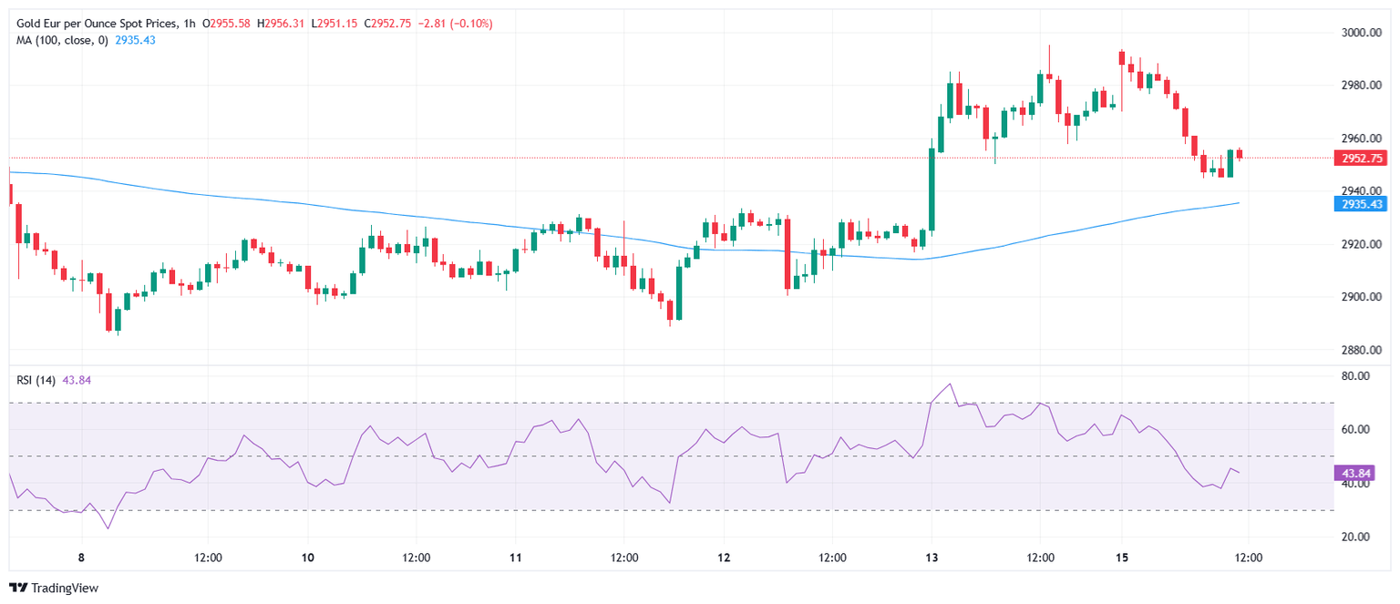 El precio del Oro en euros cotiza al momento de escribir sobre 2.955,80, perdiendo un 0.57% en el día.