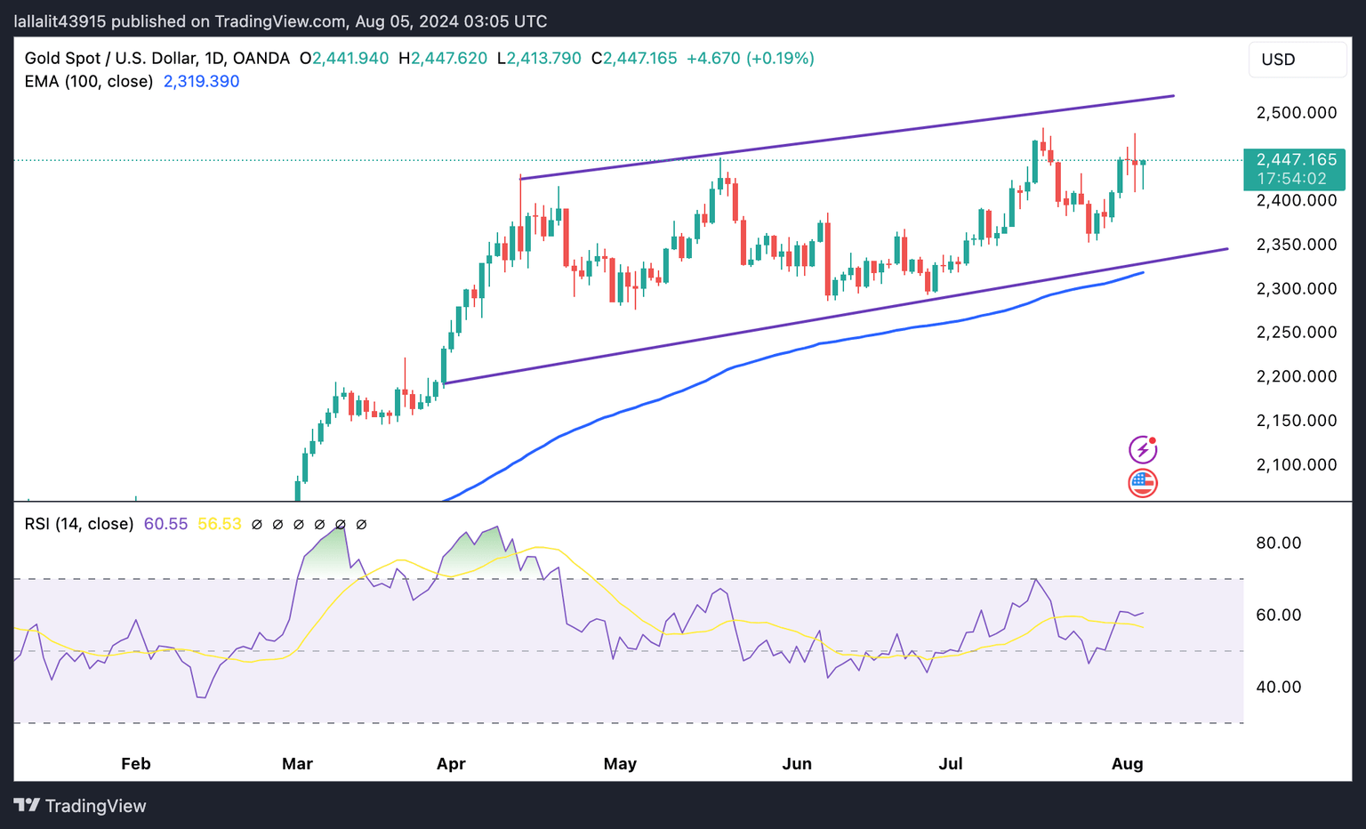 El metal precioso ha cotizado dentro del canal de tendencia ascendente desde mediados de abril. El primer objetivo al alza surge cerca de 2.450$ (máximo del 20 de mayo) en ruta hacia 2.483$ (máximo histórico del 17 de julio). Las velas alcistas por encima de este nivel podrían exponer al XAU/USD a un posible impulso alcista hasta el límite superior del canal de tendencia de 2.515$.