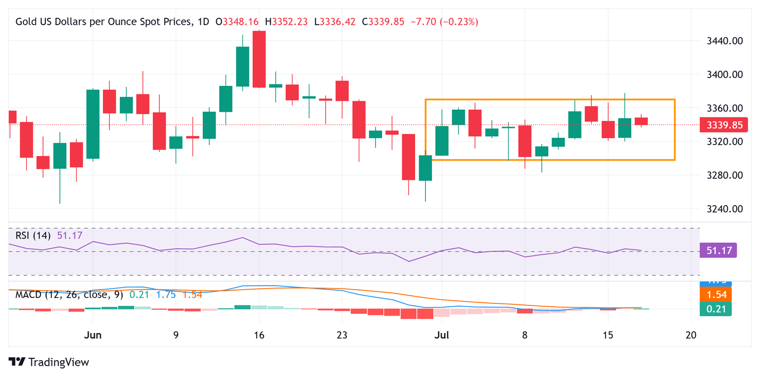 - No obstante, los operadores aún están valorando la posibilidad de 50 puntos básicos de alivio por parte de la Fed este año. Esto, junto con las preocupaciones sobre las posibles repercusiones económicas de las erráticas políticas comerciales de Trump, podría respaldar al metal precioso de refugio seguro. De hecho, Trump notificó la semana pasada a los líderes de 25 países sobre nuevas tasas arancelarias que entrarán en vigor el 1 de agosto.