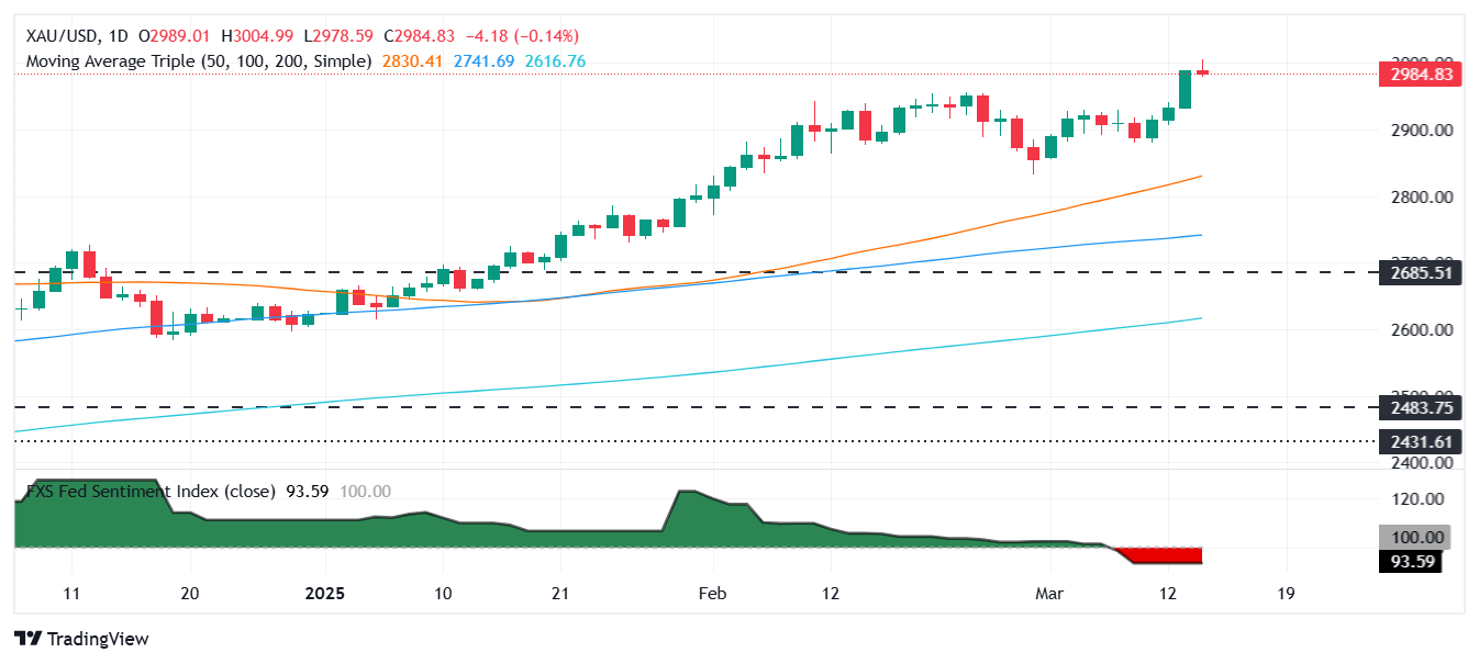 - El oro alcanza brevemente un máximo sin precedentes de 3.004$ por onza antes de asentarse en 2.982$ en medio de la volatilidad del Dólar estadounidense.