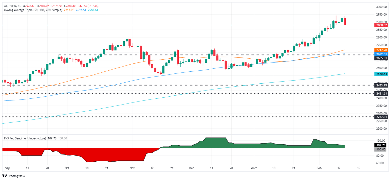 La tendencia alcista del precio del Oro se mantiene intacta, aunque está retrocediendo y ha tocado un mínimo de dos días de 2.878$. Cabe señalar que el Índice de Fuerza Relativa (RSI) salió del territorio de sobrecompra después de permanecer allí durante la mayor parte de febrero. Por lo tanto, la caída del XAU/USD podría detenerse si los compradores defienden el mínimo diario del 12 de febrero de 2.864$.