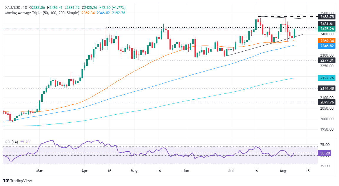 Análisis técnico: El precio del Oro contraataca y sube hacia 2.450$