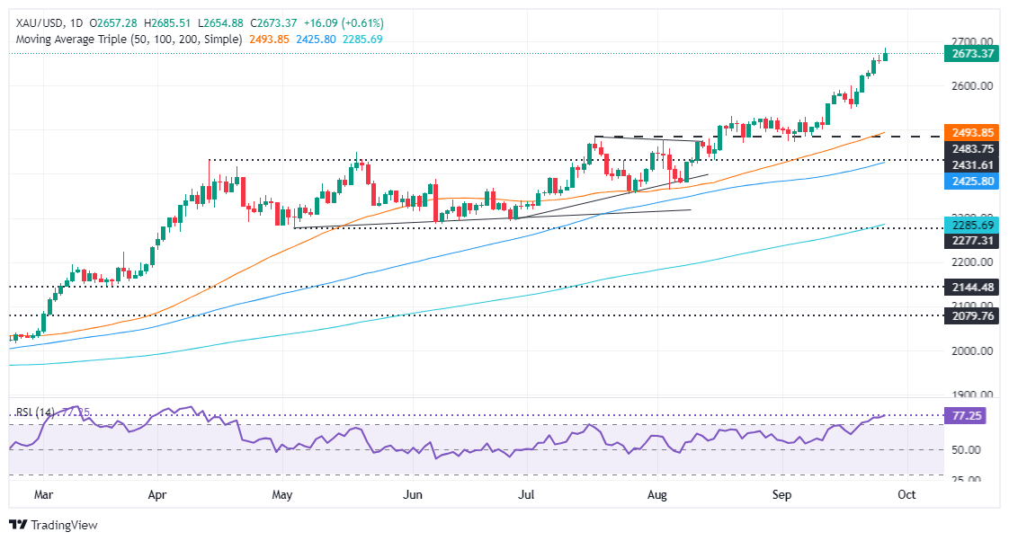 Si el XAU/USD extiende su recuperación más allá del máximo anual actual (YTD) de 2.685$, la próxima resistencia sería la marca de 2.700$. A continuación estaría el nivel de 2.750$, seguido de 2.800$.