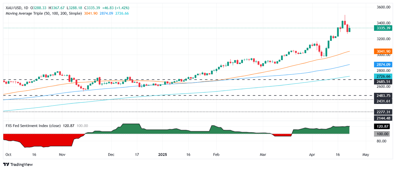 Perspectiva técnica del XAU/USD: La tendencia alcista del precio del Oro se reanuda a medida que los compradores recuperan los 3.300$