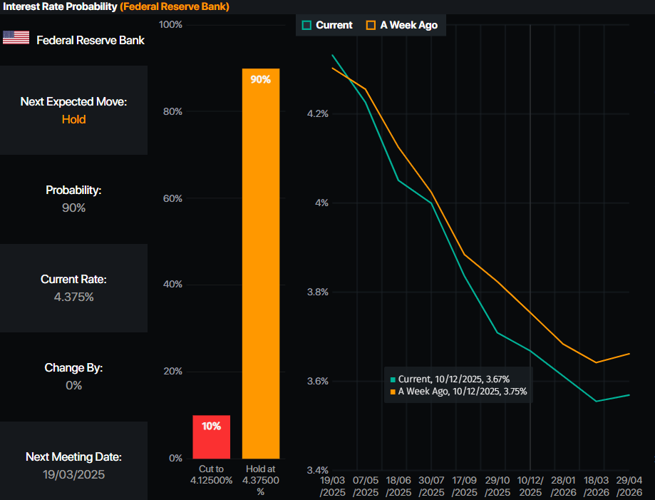 Mientras tanto, los datos recientemente revelados de EE.UU. generaron temores de recesión. El modelo GDPNow de la Fed de Atlanta proyecta que el Producto Interno Bruto (PIB) para el primer trimestre de 2025 será de -2.8%, por debajo del 1.6% estimado el lunes.