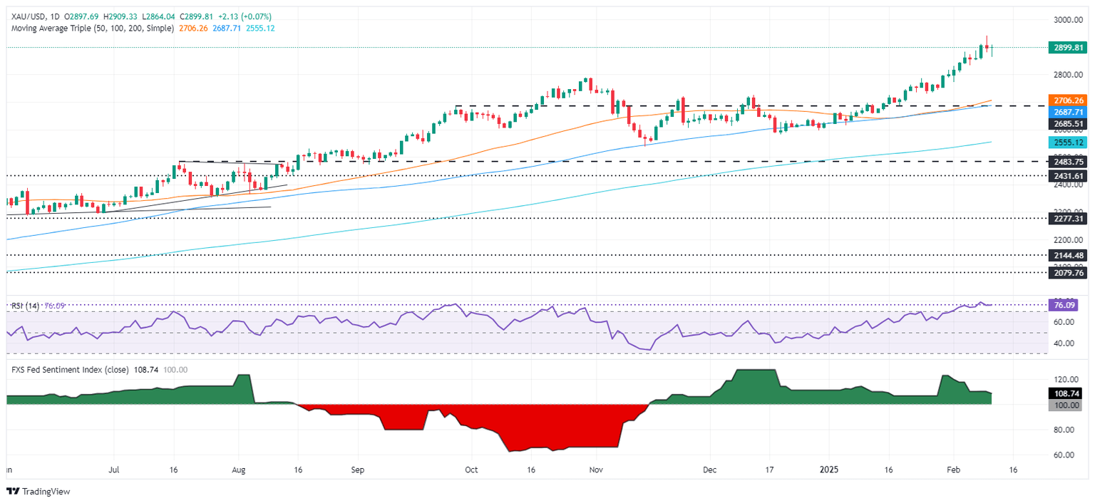 Perspectiva técnica del XAU/USD: El precio del oro ronda los 2.900$