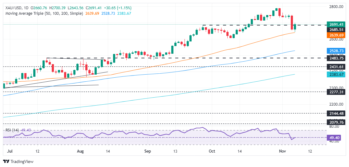 Los precios del Oro se mantuvieron firmes y registraron ganancias de más del 1% después de que la Reserva Federal (Fed) redujera las tasas de interés en 25 puntos básicos (pb), como se esperaba. Sin embargo, según la reacción del metal dorado, parece que ya estaba descontado. El XAU/USD cotiza en 2.692$ después de rebotar desde un mínimo diario de 2.643$.