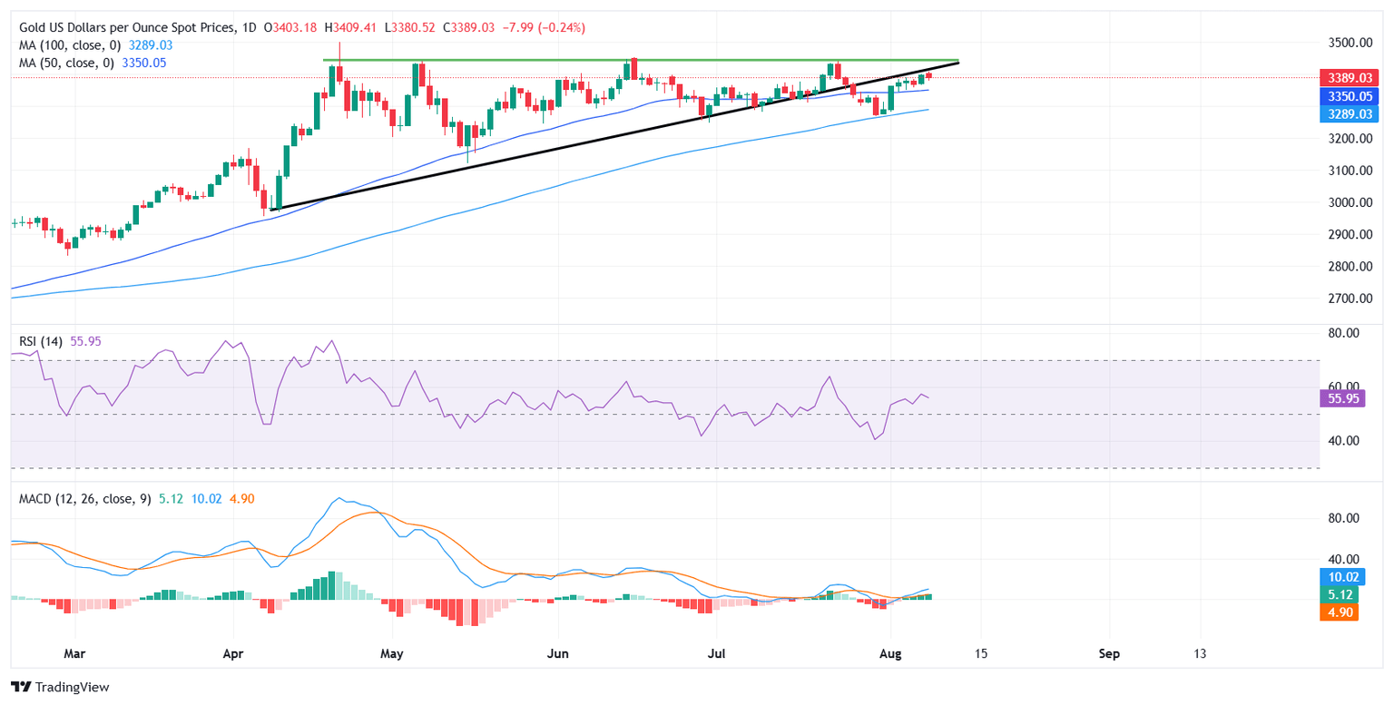 El metal precioso sigue estando respaldado por las preocupaciones sobre los impactos económicos de los aranceles de EE.UU., las persistentes preocupaciones sobre la inflación y la creciente especulación de que la Reserva Federal (Fed) reducirá la tasa de interés en septiembre. Sin embargo, un modesto rebote en el Dólar estadounidense (USD), rendimientos de bonos del Tesoro relativamente estables y un sentimiento de apetito por el riesgo más amplio en los mercados de renta variable globales están limitando un mayor alza, ya que los alcistas luchan por romper decisivamente la barrera psicológica clave en 3.400$.