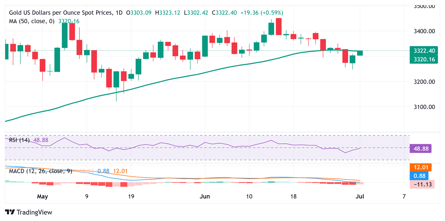 El precio del Oro (XAU/USD) mantiene su fuerte tono de compra durante la primera mitad de la sesión europea del martes y actualmente cotiza alrededor de la zona de 3.340$, con un aumento de más del 1% en el día. El Dólar estadounidense (USD) languidece cerca de su nivel más bajo desde febrero de 2022 en medio de la creciente aceptación de que la Reserva Federal (Fed) reanudará su ciclo de recortes de tasas en un futuro cercano, lo que, a su vez, se considera beneficioso para el oro no generador de rendimiento. Aparte de esto, la creciente incertidumbre sobre las políticas arancelarias del presidente estadounidense Donald Trump antes de la fecha límite del 9 de julio ayuda a la mercancía a construir sobre el rebote positivo del día anterior desde un mínimo de un mes.