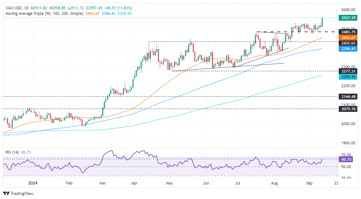 Si el XAU/USD extiende su tendencia alcista, la próxima resistencia serían los niveles clave psicológicos como la marca de 2.575 $, seguida de la cifra de 2.600 $.