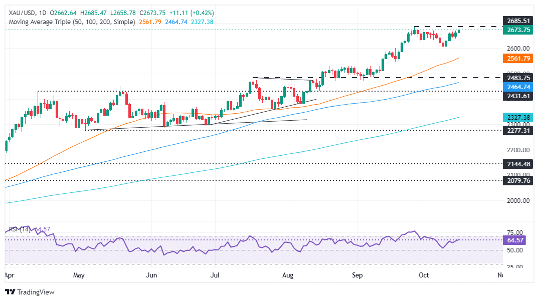 Por el contrario, si el XAU/USD cae por debajo del máximo del 4 de octubre en 2.670$, un retroceso hacia 2.650$ está en las cartas. En caso de mayor debilidad, el siguiente soporte sería 2.600$, seguido de la media móvil simple (SMA) de 50 días en 2.561$.