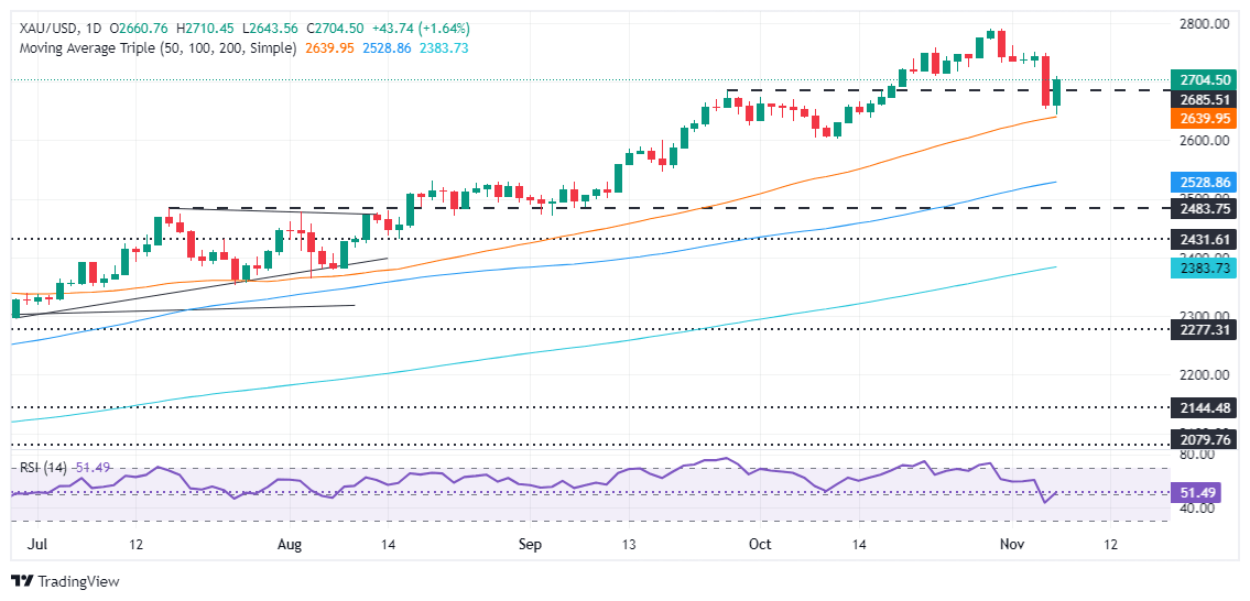 Los precios del Oro subieron por encima de 2.700$ después de que la Reserva Federal (Fed) decidiera bajar las tasas de interés y reconociera que los efectos de las elecciones en EE.UU. no se sentirán a corto plazo. Al momento de escribir, el XAU/USD cotiza en 2.704$, subiendo más de un 1,7%.