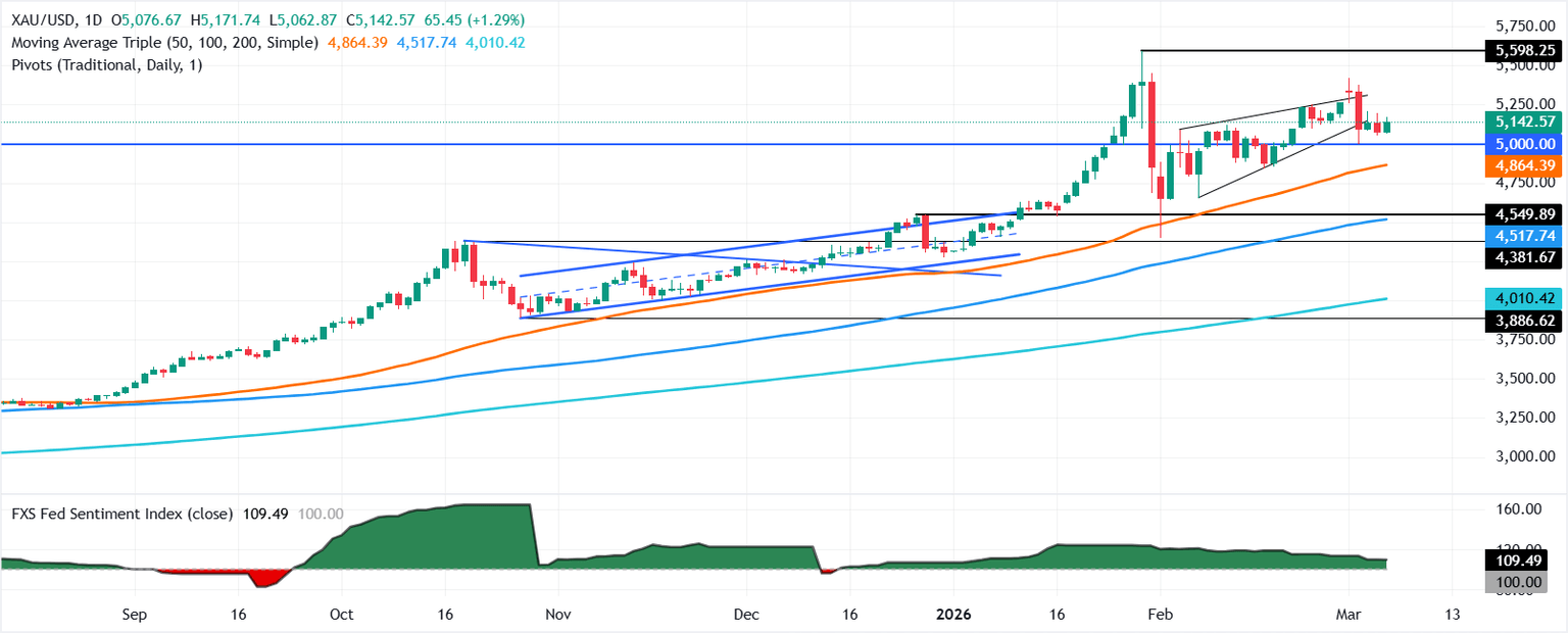 El precio del Oro (XAU/USD) se recupera el viernes durante la sesión norteamericana, impulsado por un informe de empleo de EE.UU. más débil de lo esperado y un ambiente de aversión al riesgo en medio del conflicto en Oriente Medio. Al momento de escribir, el XAU/USD cotiza cerca de 5.140$, con un aumento de más del 1%.