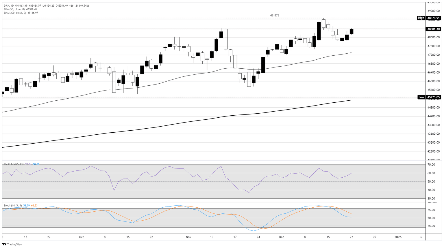 Los mercados de renta variable se están inclinando hacia el lado alto para cerrar el resto de la ventana de negociación de 2025 con la esperanza de provocar un último repunte de Santa Claus, pero el tiempo se está agotando con los mercados de acciones programados para cerrar temprano esta semana. La Bolsa de Nueva York (NYSE) cerrará temprano a las 18:00 GMT (13:00 EST) el miércoles. La volatilidad podría aumentar durante las festividades, pero el impulso general del mercado probablemente se mantenga contenido hacia el nuevo año mientras los inversores se mantengan al margen.