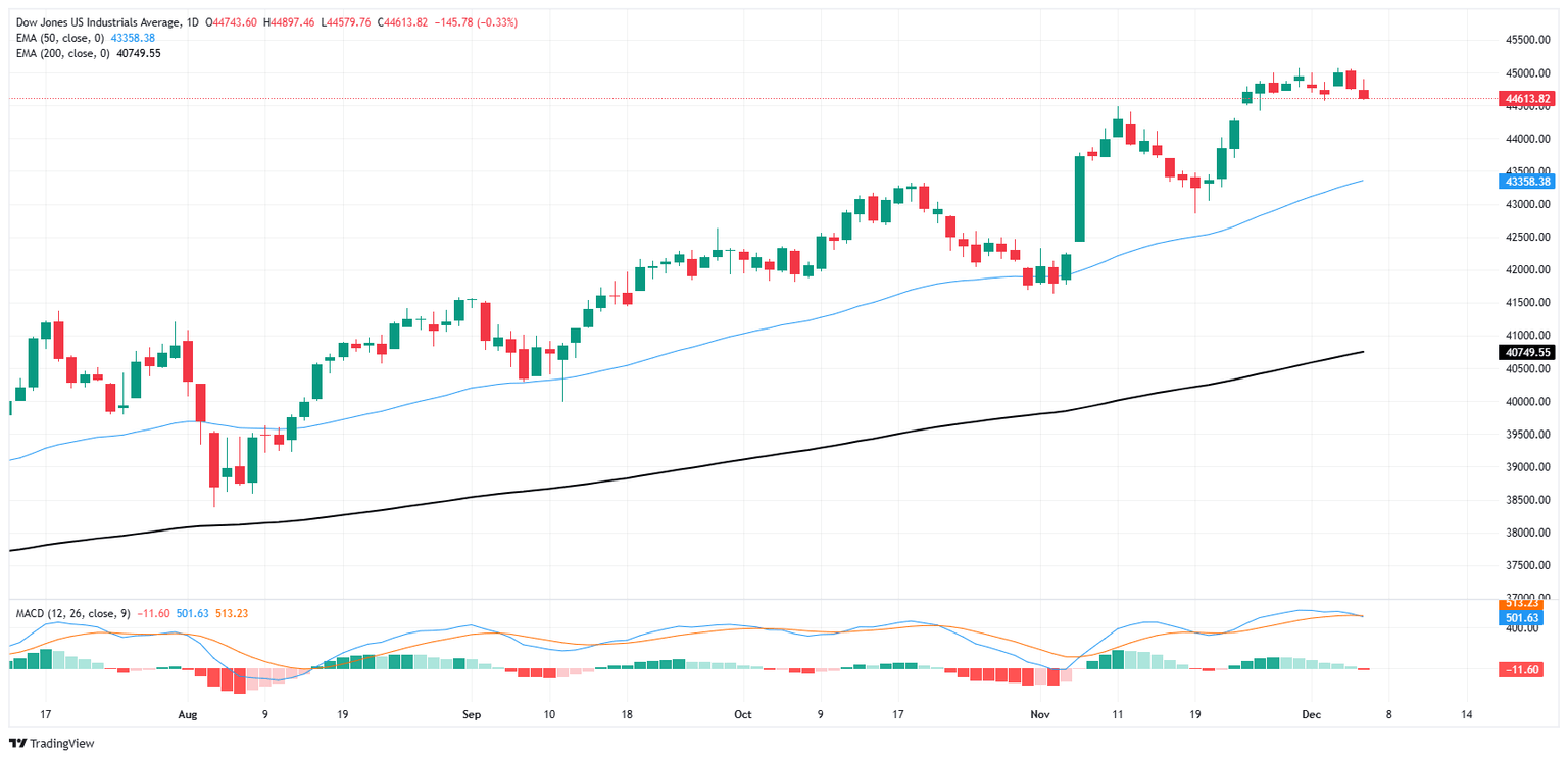 A pesar de suavizarse aún más el viernes y arrastrar al índice bursátil principal a una semana a la baja, el Dow Jones se negocia firmemente en territorio alcista y aún se mantiene al norte de los 44.500. El DJIA cayó por debajo del nivel clave de 45.000 esta semana, pero la presión bajista sigue siendo tibia en el mejor de los casos.