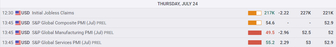 Un fuerte informe en los datos económicos clave de EE.UU. también obstaculizó un rally alcista absoluto el jueves. Las solicitudes iniciales de desempleo semanales se redujeron a 217.000, y el segmento de servicios del Índice de Gerentes de Compras (PMI) de EE.UU. mejoraron drásticamente en junio. Un mercado laboral firme y las expectativas de actividad empresarial siguen avanzando con fuerza, lo que dificulta que la Fed realice recortes de tasas más pronto que tarde.