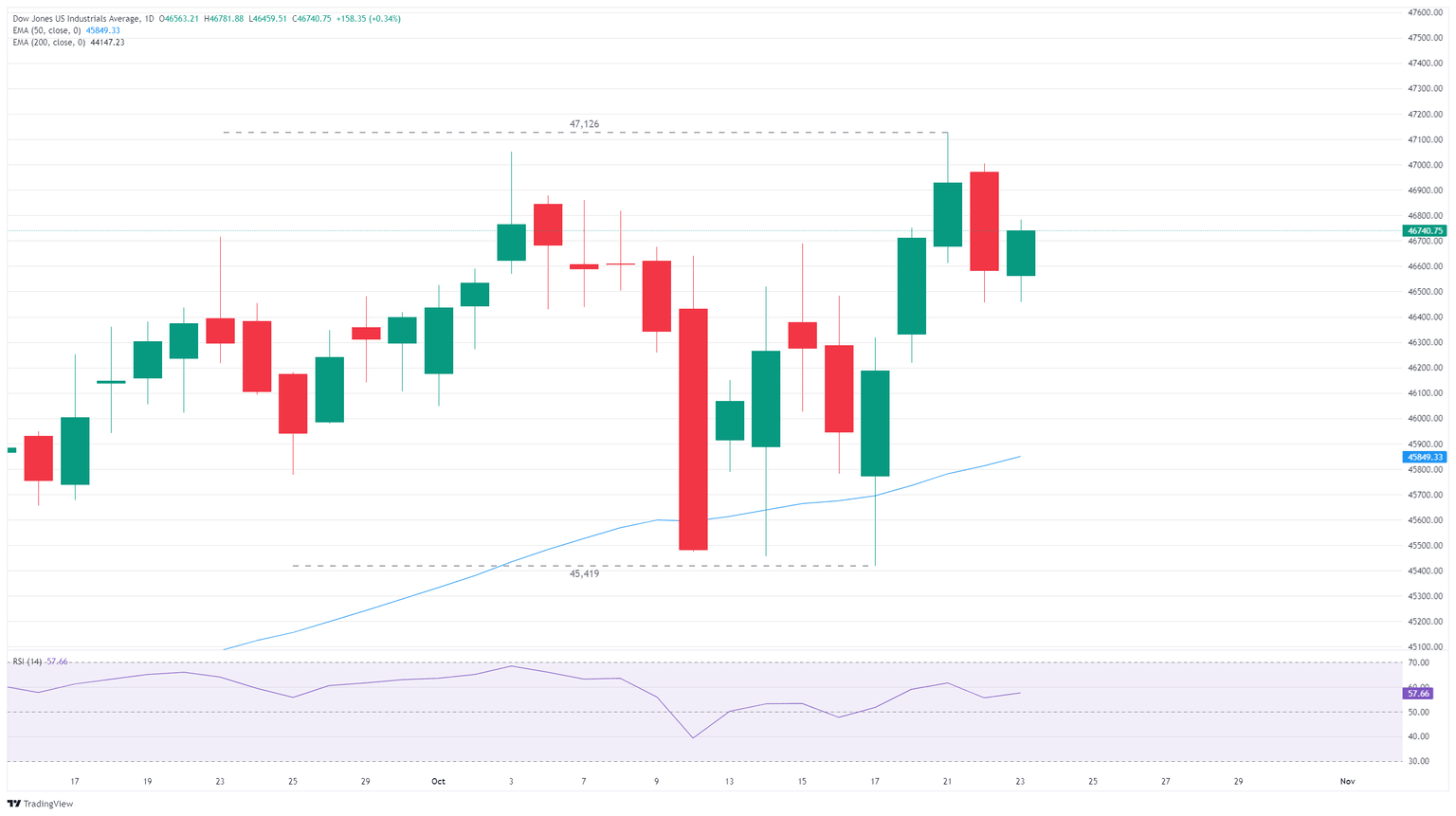 El Promedio Industrial Dow Jones (DJIA) encontró ganancias ligeras el jueves, subiendo alrededor de 150 puntos y recuperando algunas de las pérdidas que golpearon al índice bursátil principal en la sesión anterior. Los inversores siguen cautelosos ante un nuevo endurecimiento de la disputa comercial en curso entre EE.UU. y China, pero otra temporada de ganancias excepcional y las esperanzas de recortes adicionales en las tasas de interés de la Reserva Federal (Fed) mantienen a los inversores en el lado alcista.