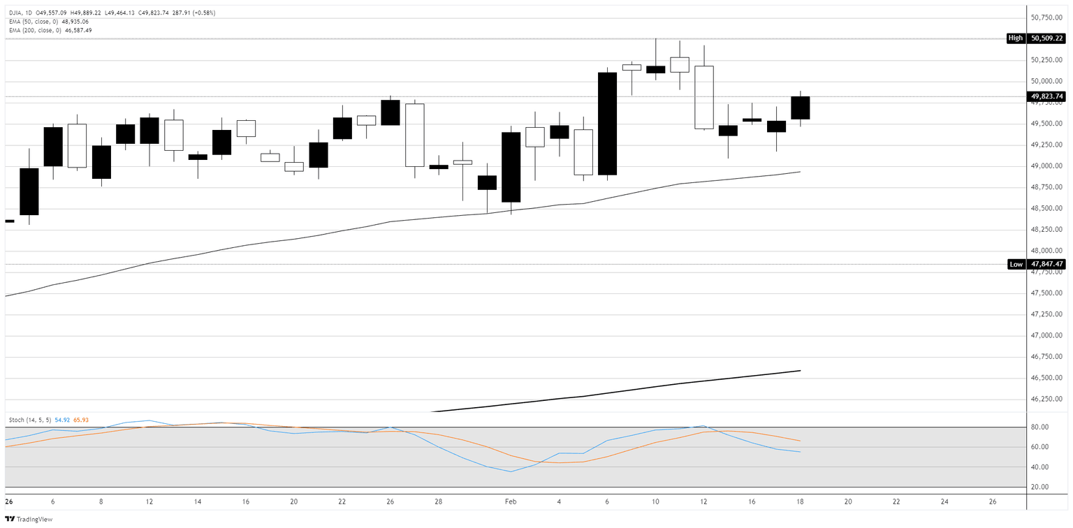 El Promedio Industrial Dow Jones (DJIA) subió alrededor de 300 puntos, o aproximadamente un 0,65%, el miércoles, ya que los compradores de caídas continuaron regresando a las acciones por tercera sesión consecutiva esta semana tras la fuerte venta impulsada por la IA de la semana pasada. El S&P 500 subió un 0,6% y el Nasdaq Composite ganó alrededor de un 0,5%, con los fabricantes de chips y los nombres tecnológicos de gran capitalización que habían sido golpeados liderando la carga. Los inversores mantienen un ojo en la publicación de las minutas de la reunión de enero de la Reserva Federal (Fed) a las 2:00 PM ET, que pueden ofrecer pistas sobre el camino de tasas del banco central para el resto de 2026. La Fed mantuvo las tasas en 3,50% a 3,75% en su reunión de enero, y los mercados están descontando aproximadamente un 90% de probabilidad de que no haya cambios en marzo, con la herramienta FedWatch de CME mostrando que el primer recorte de tasas del año no se espera hasta junio como muy pronto.