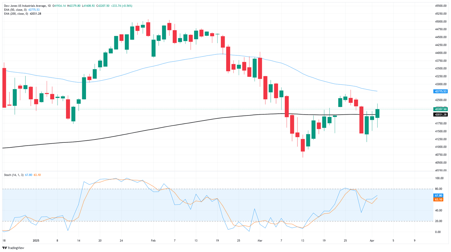 El Dow Jones mantiene una inclinación alcista tras la revelación de los aranceles de Trump