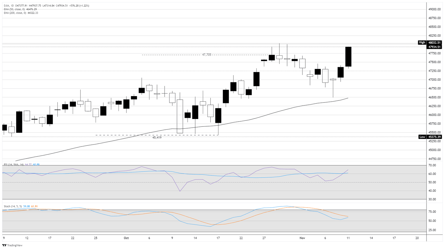 - Las expectativas de un fin al cierre gubernamental en curso están fortaleciendo la confianza de los inversores.