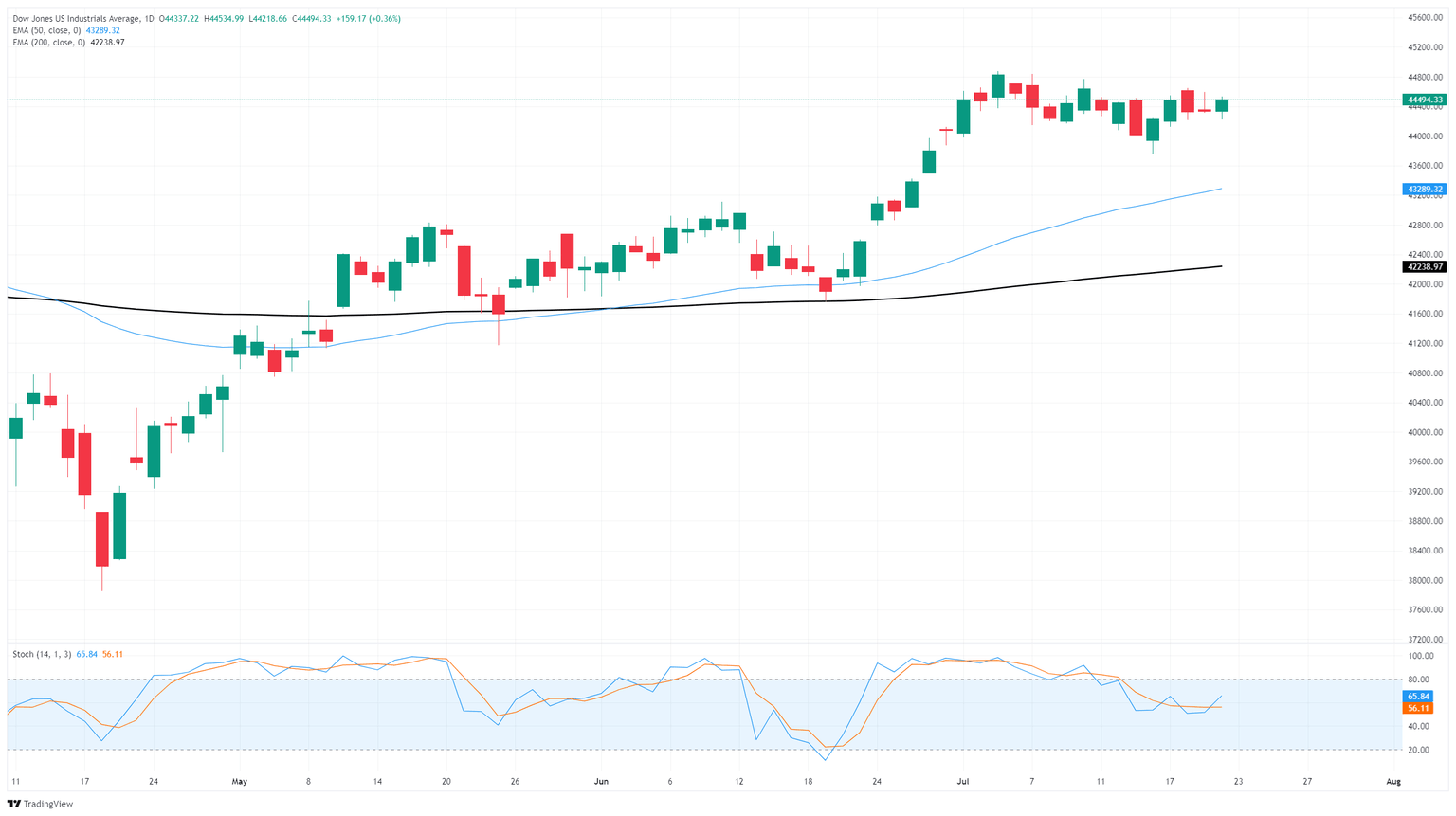 El rendimiento mediocre se ha convertido en la norma para el Dow Jones. La acción del precio está firmemente anclada en un rango de consolidación entre 44.800 y 44.000. El último impulso alcista del Dow ha dejado al índice de acciones mayor atrapado en tierra de nadie sin suficiente impulso para recuperar nuevos máximos históricos por encima de 45.000. Sin embargo, los niveles técnicos a la baja son difíciles de determinar, ya que el DJIA supera sus propias medias móviles por un margen significativo.