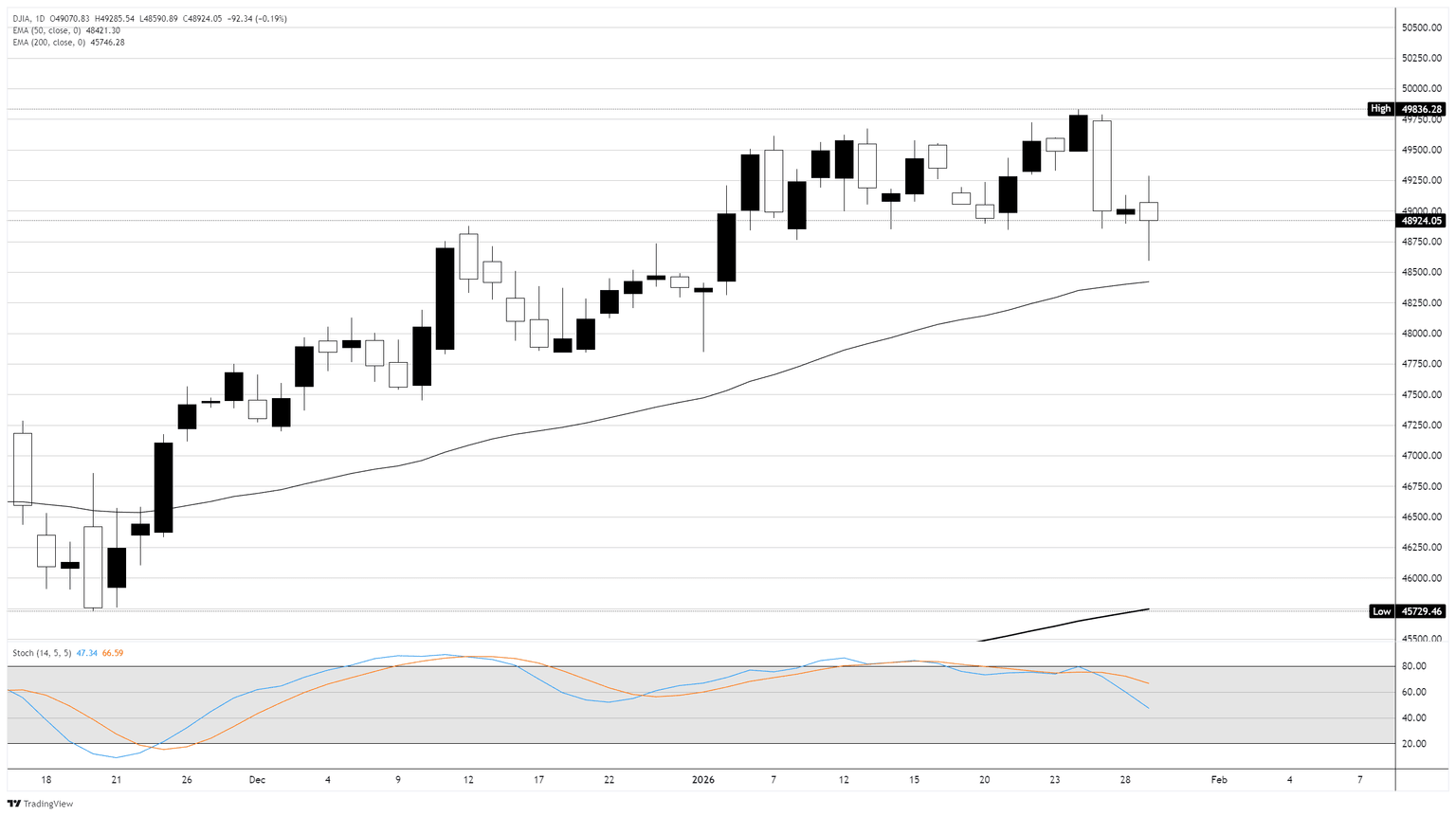 Gráfico diario del Dow Jones