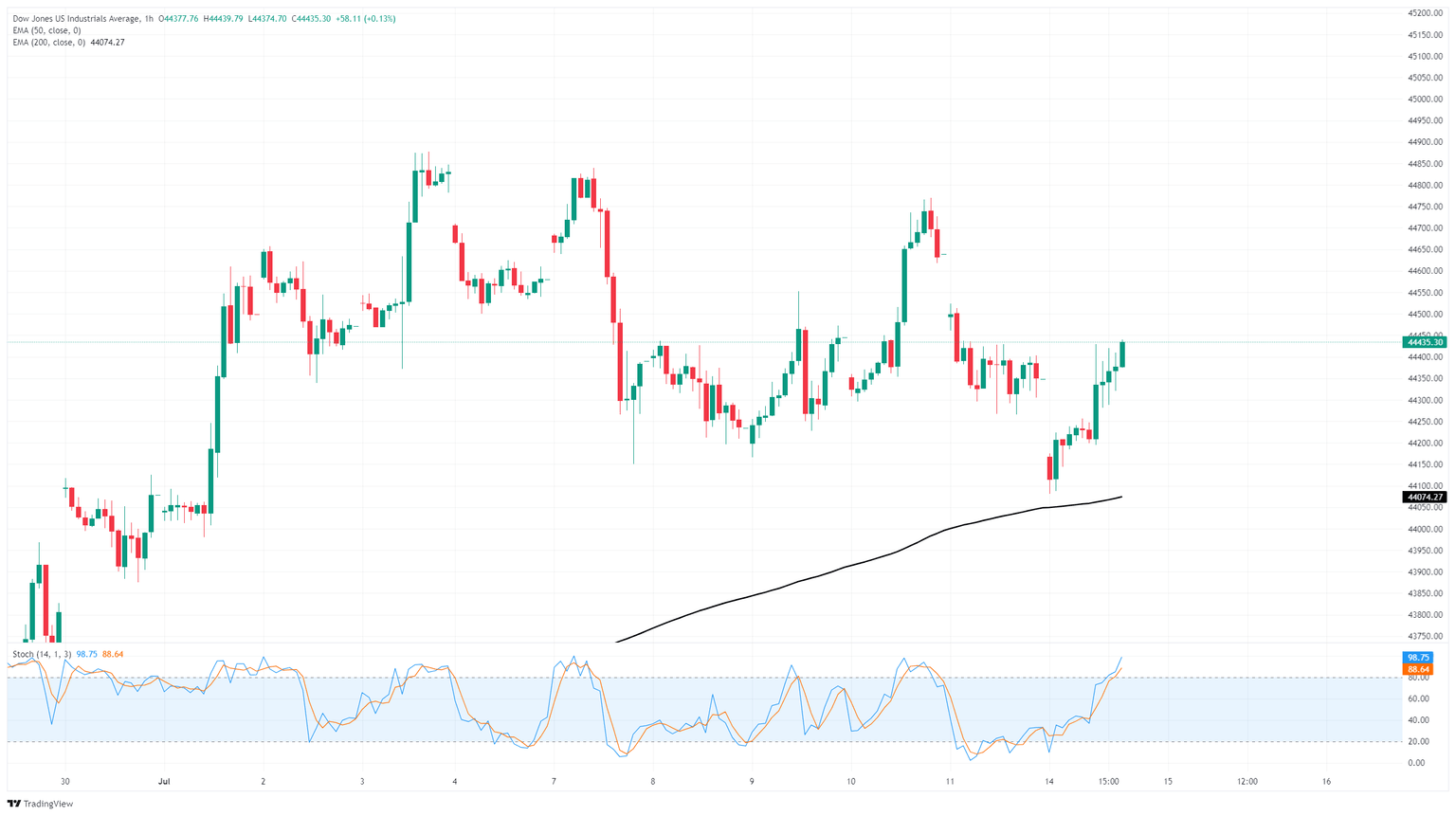 El Promedio Industrial Dow Jones (DJIA) flotó cerca de la región de 44.400 el lunes, manteniéndose estable en una zona de consolidación a corto plazo mientras los mercados globales apuestan a que una nueva ronda de amenazas arancelarias del presidente Donald Trump será retrasada, suspendida o recortada una vez más.