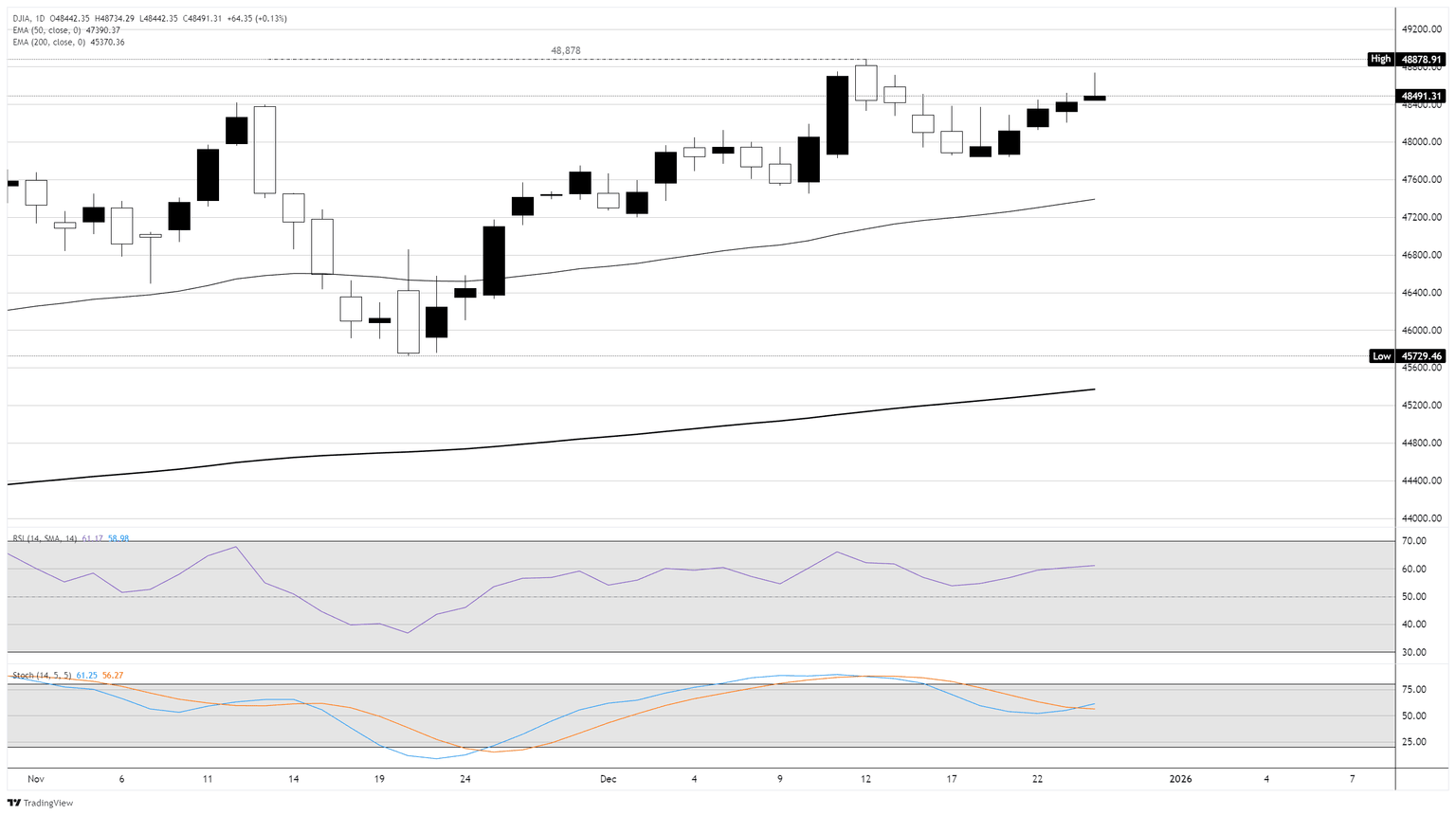 Con el rally de Santa Claus de fin de año manteniendo las ofertas elevadas, el Dow Jones está en camino de cerrar ya sea en territorio alcista o al menos plano por octavo mes consecutivo, al entrar en el nuevo año. A pesar de que los volúmenes de fin de año se están secando, las acciones permanecen profundamente en territorio alcista para el año. El Dow Jones ha subido más del 14% en lo que va del año, con el SP500 probando una ganancia del 17.5% desde las ofertas de apertura de enero.