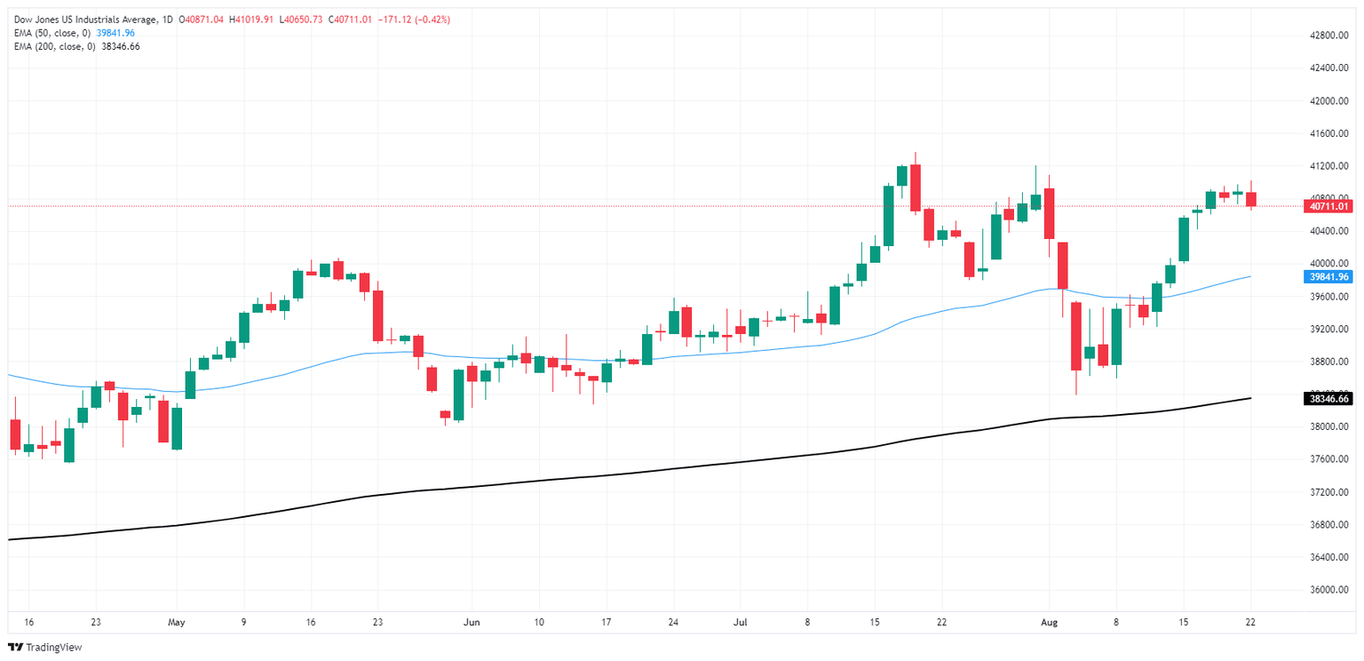 El Promedio Industrial Dow Jones (DJIA) perdió algo de peso el jueves, retrocediendo alrededor de 200 puntos después de un fallo en las cifras del Índice de Gerentes de Compras (PMI) de EE.UU., lo que dio a los inversores una razón para hacer una pausa. Las cifras del PMI de EE.UU. destacaron aún más un debilitamiento en el mercado laboral de EE.UU., enviando nerviosismo a los mercados, que continúan apostando a que un recorte de tasas de la Reserva Federal (Fed) en septiembre resolverá todos sus problemas.