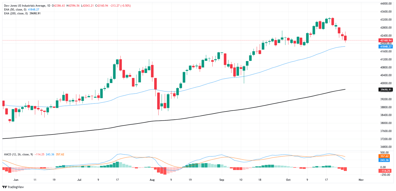 El Dow Jones pasó la mayor parte de la semana de negociación bajando hacia la zona de los 42.000, ya que el índice principal de acciones toma un respiro del desempeño estelar general de 2024. El tablero de acciones ha roto una racha ganadora de seis semanas, pero aún está firmemente plantado en territorio alcista mientras los mercados se toman una pausa y retroceden desde los 43.000.